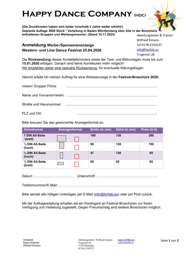 Rückmeldebogen und Zusatzinfos für Werbesponsoren in unserer Broschüre – Anzeigengrößen, Preise usw.
