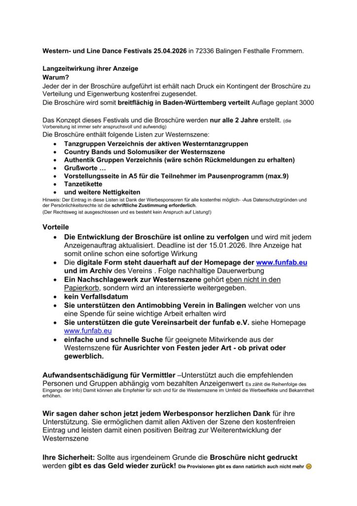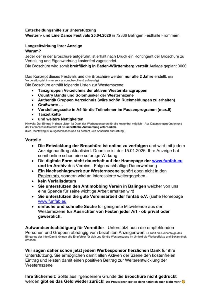 - Hierdurch ist sichergestellt, das die Verteilung in Baden-Württemberg an alle Aktiven Westerntanzgruppen, Contrymusiker und Werbesponsoren geht und eine weitgehende Flächendeckung erreicht werden kann.
